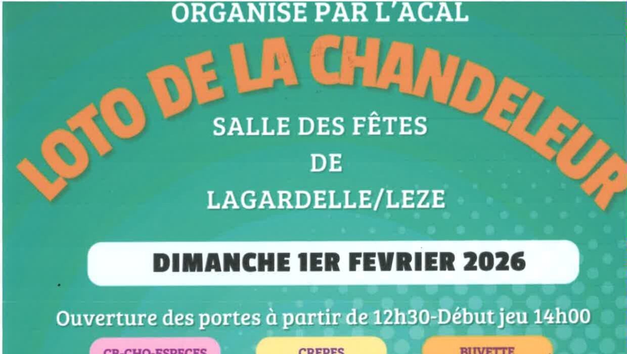 L'ACAL organise un LOTO de la Chandeleur, ce dimanche 1er février, dans la salle des fêtes de Lagardelle-sur-Lèze. De nombreux lots sont à gagner : bons d'achat, TV, Air Fryer, machine expresso, paniers garnis, lots de gras, séance Spa, spectacle au Casino Barrière, 2 places pour voir le Stade Toulousain... Vous pourrez également tenter de […] |
